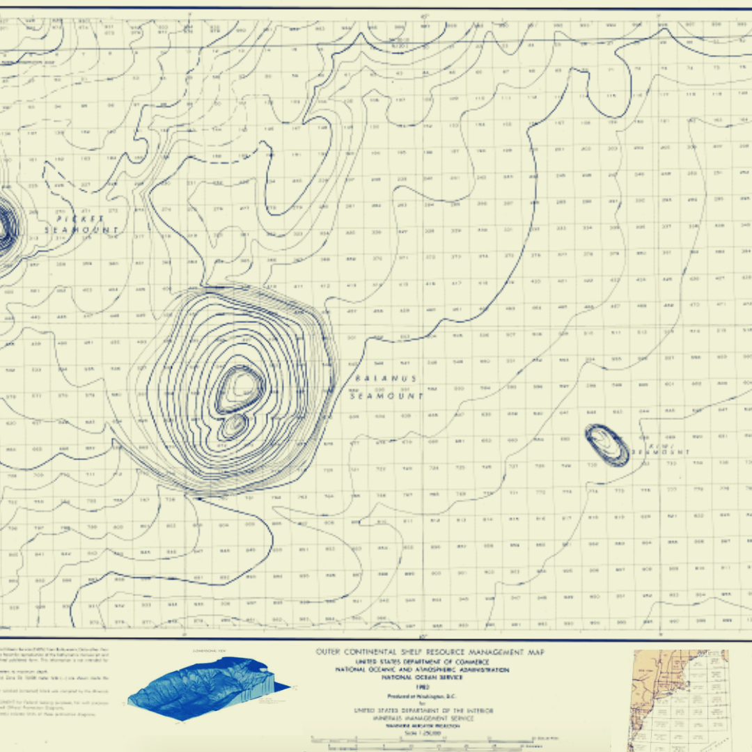 I became enamored of hydrographic maps, which are cartographic maps for the sea floor. They reminded me of the maps that used to come with issues of National Geographic in the 1970s. I especially loved the small data illustrations that accompanied such maps in the margins, and created some collages in this vein, intending to release them with the album. When I started working with Constellation Tatsu on the album concept, the idea was scrapped, but I still find these collages fun and interesting.